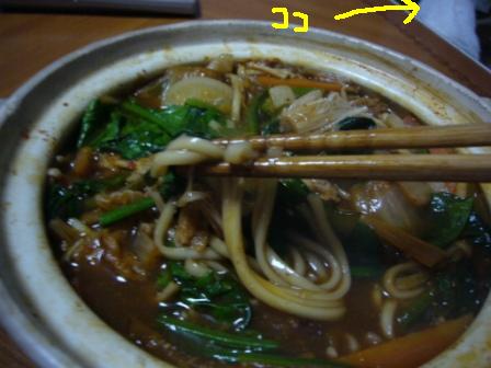 ということで、晩御飯は、チゲ風鍋焼きうどんです。