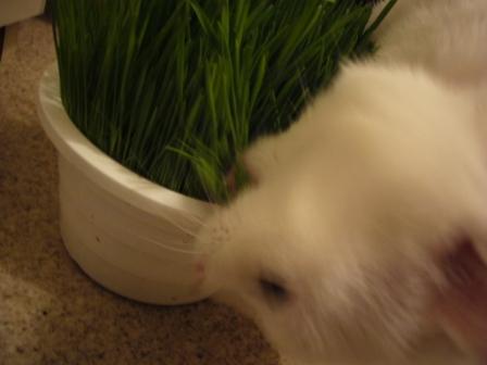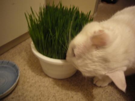 つーさん、ネコ草が好き。ばりぼり食べています。