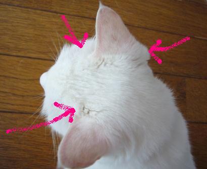 耳と額の境の短い毛