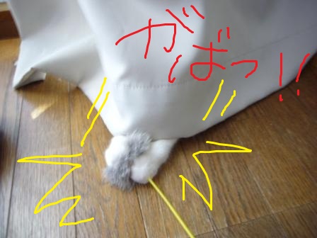 結構なスピードで走り回っては、ひもやじゃらしを退治しております。