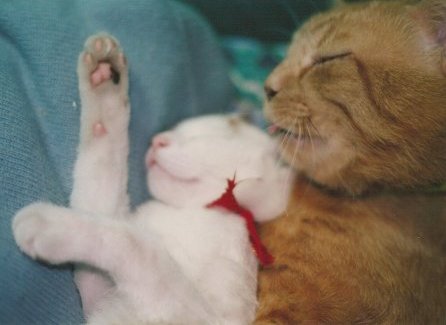 大体、海ちゃんがネズミのような猫状態で(つまりは子猫)実家に来たときは、先住のフクちゃんという茶トラの雄猫に、散々面倒を見てもらったというのに。