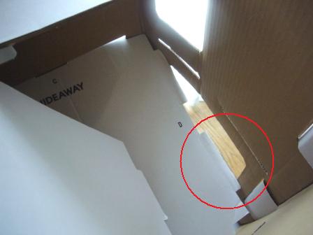 三の丸(三段目)の床板段ボールがたわみ、差込口から外れて下に落ち込み、乗っていたつーさんも落ち込み…