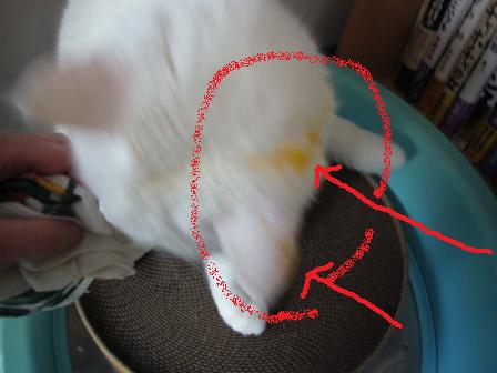 あわててふき取るものの、固まってしまって完全にはぬぐい切れず、