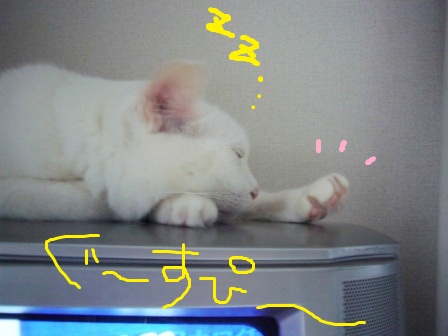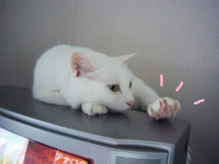 3.「暑いんじゃ~~!!!!」と、白猫の蹴りがヒットする