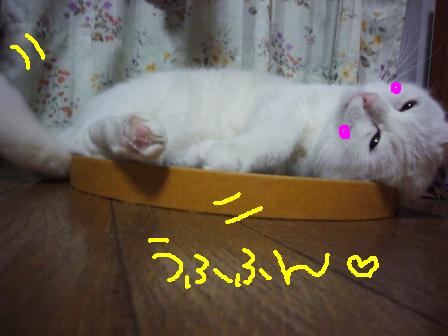 つーさん、このダンボール爪研ぎの上が定位置と化しております。