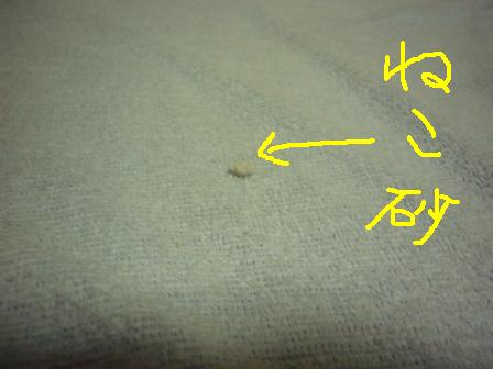 シーツの上に、トイレ砂の粒が…