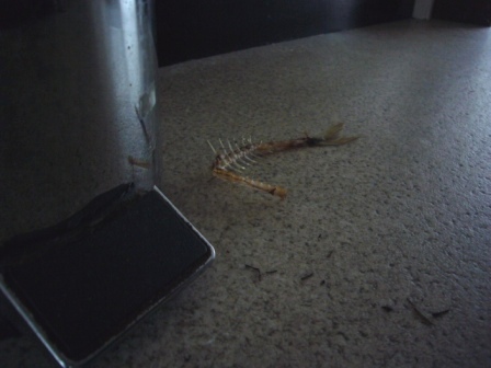 捨ててあったアジの皮と骨を漁ったノラねこがいる!しかも、この室内に!
