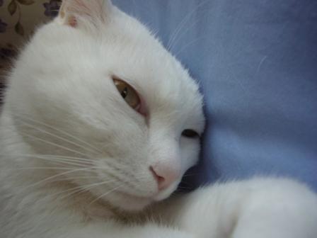 我が愛しの2代目白猫・ちいこと一緒に。